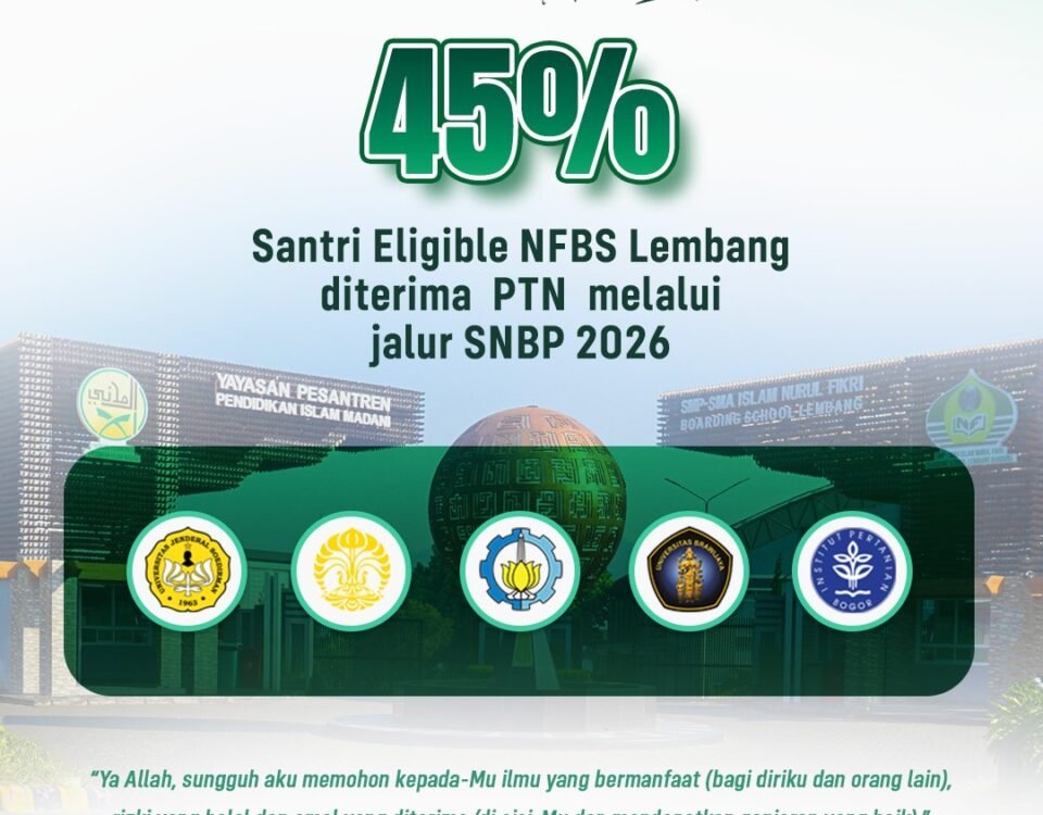 Kabar membanggakan kembali datang dari Nurul Fikri Boarding School (NFBS) Lembang. Pada Seleksi Nasional Berdasarkan Prestasi (SNBP) 2026, sebanyak 45% santri eligible berhasil lolos ke berbagai […]
